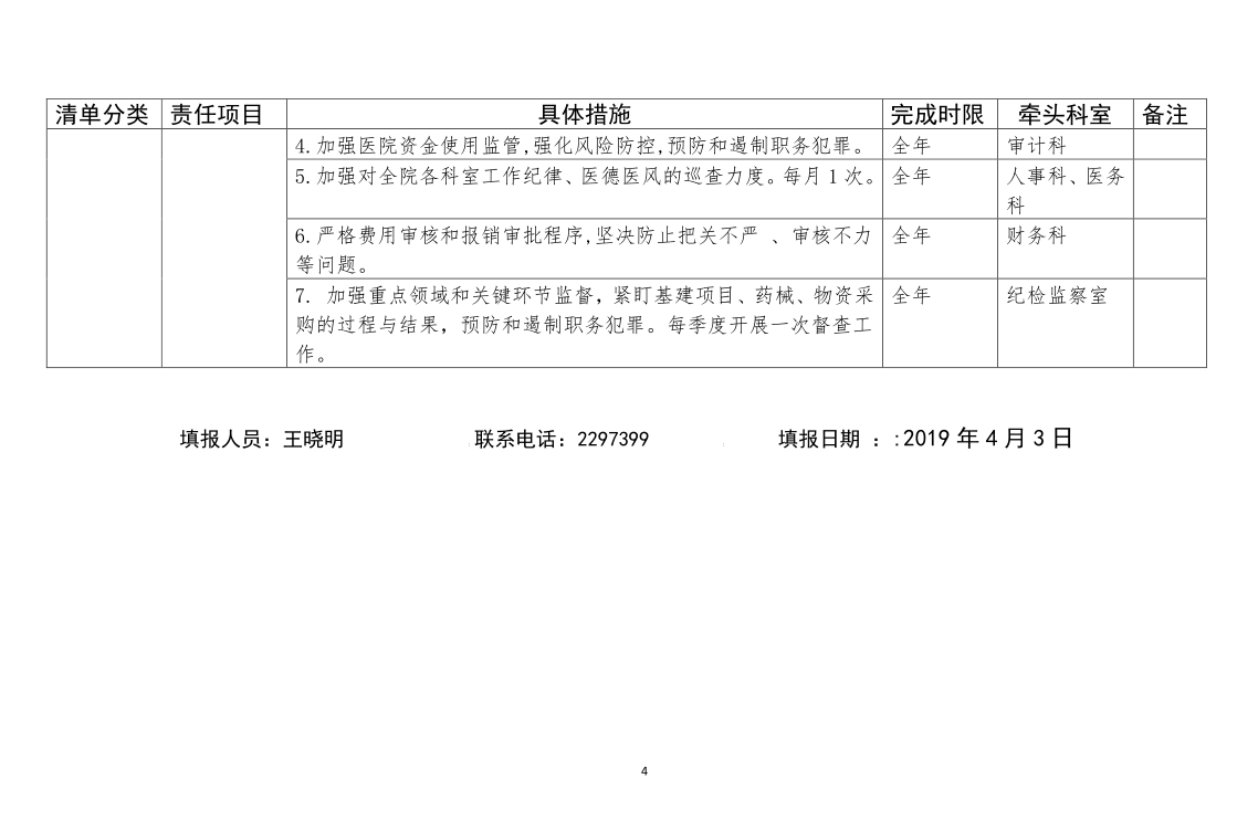 南宁市中医医院领导班子2019年度党风廉政建设主体责任清单