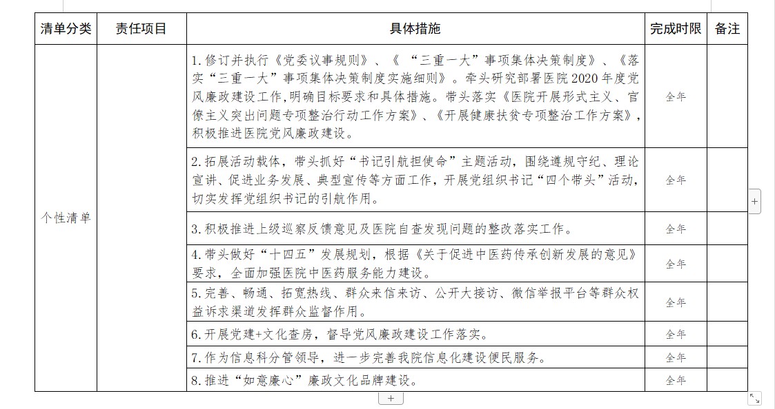 南宁市中医医院领导班子深化“书记引航担使命”主题活动2020年度主体责任清单